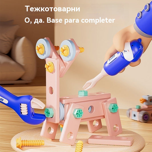 【60 части】🌈Направи си сам играчки с винтове: Образователни играчки с прости строителни блокове, играчки, кутии с инструменти и електрически бормашини
