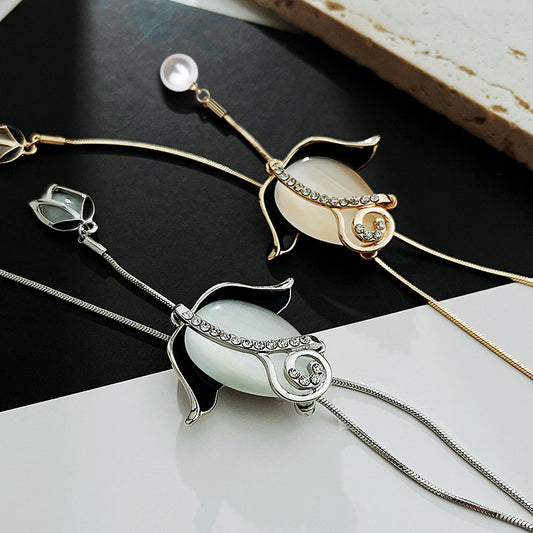 💝✨Дълго колие с котешко око и лале, верижка за пуловер, аксесоари за облекло