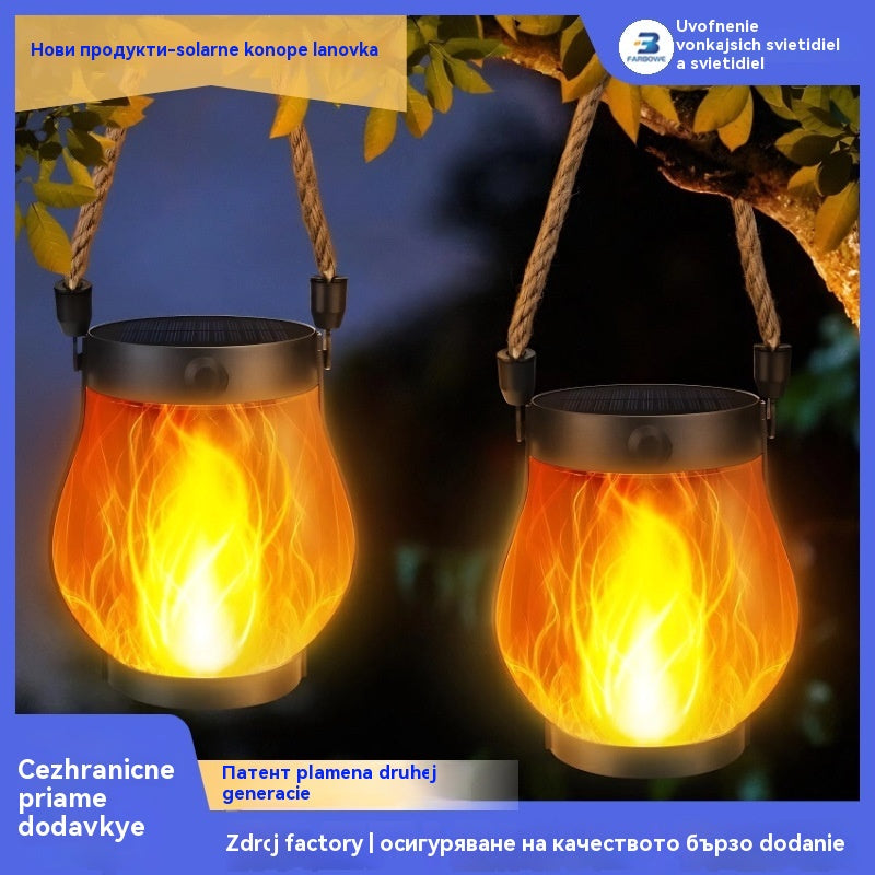 【Купете 1, вземете 1 безплатно】Соларна лампа с пламък, фенер от конопено въже, декорация за градински двор