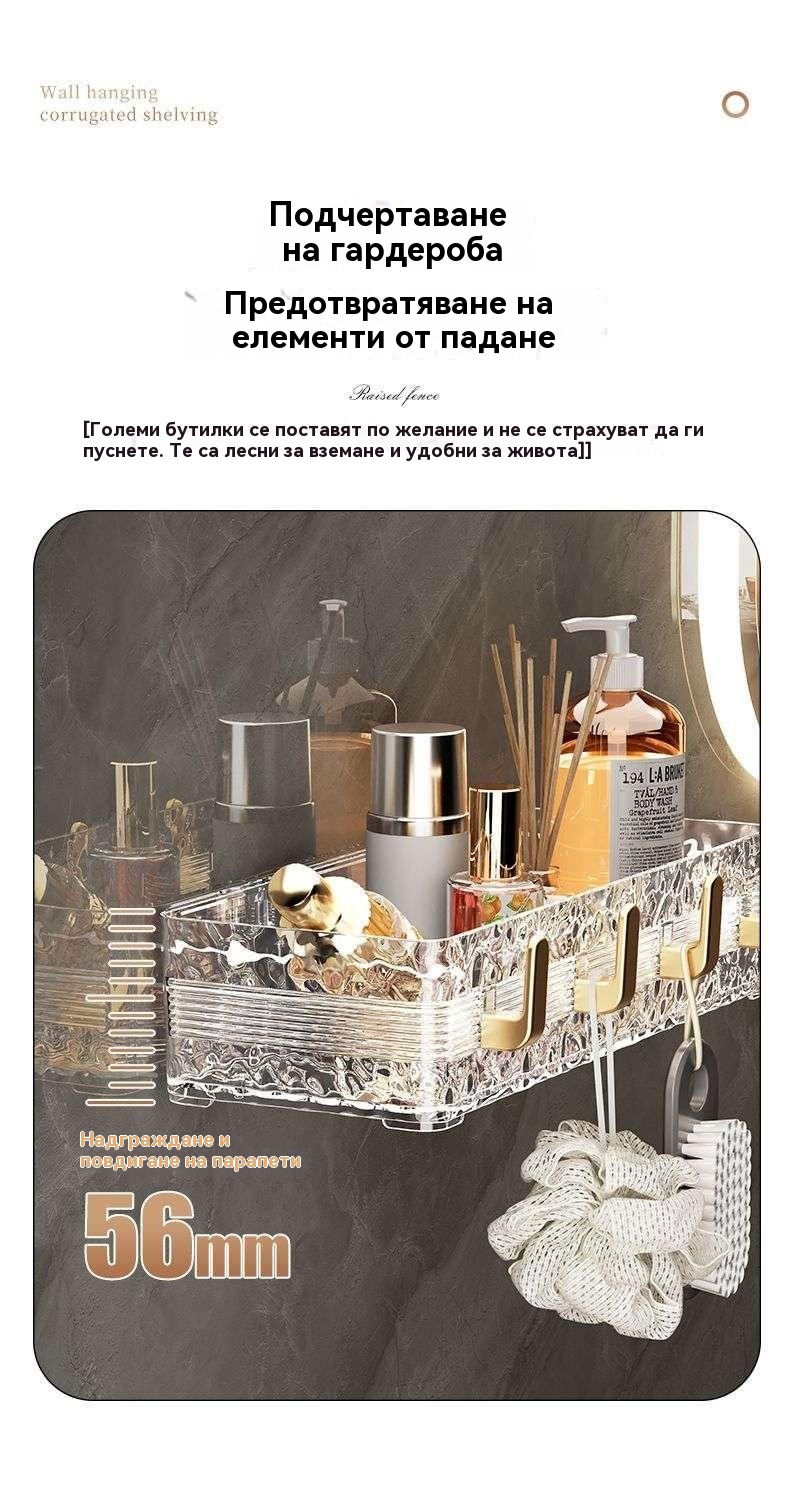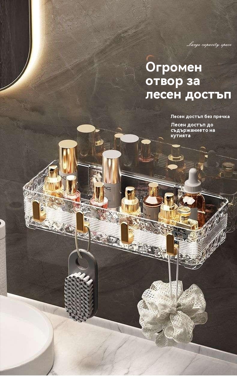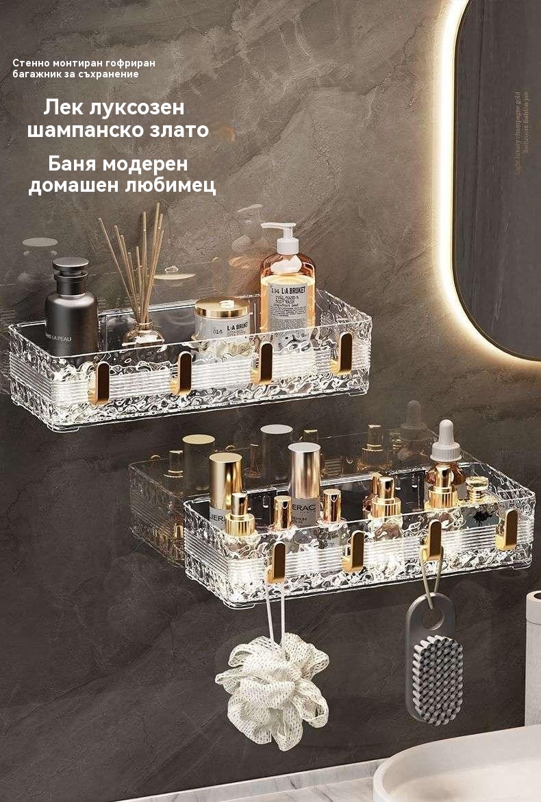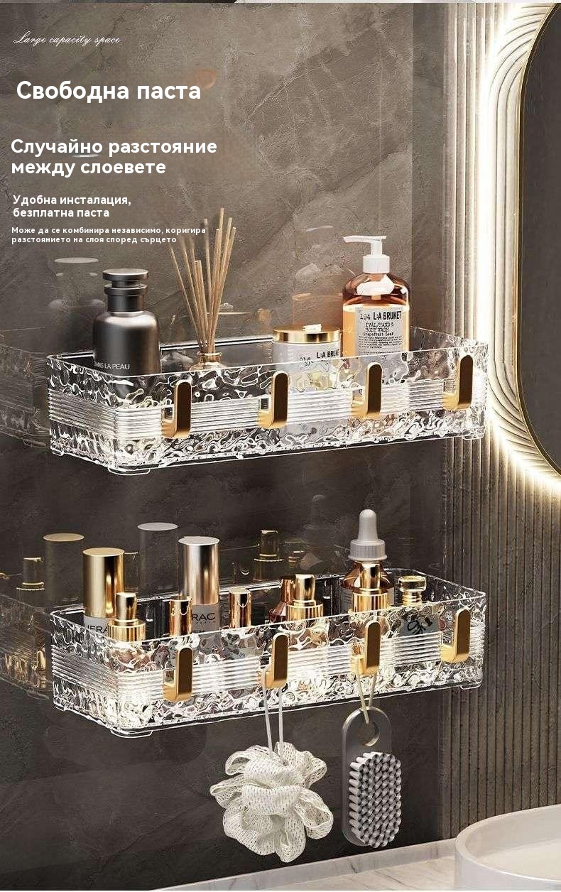 Луксозен стенен рафт за баня - съхранение без пробиване