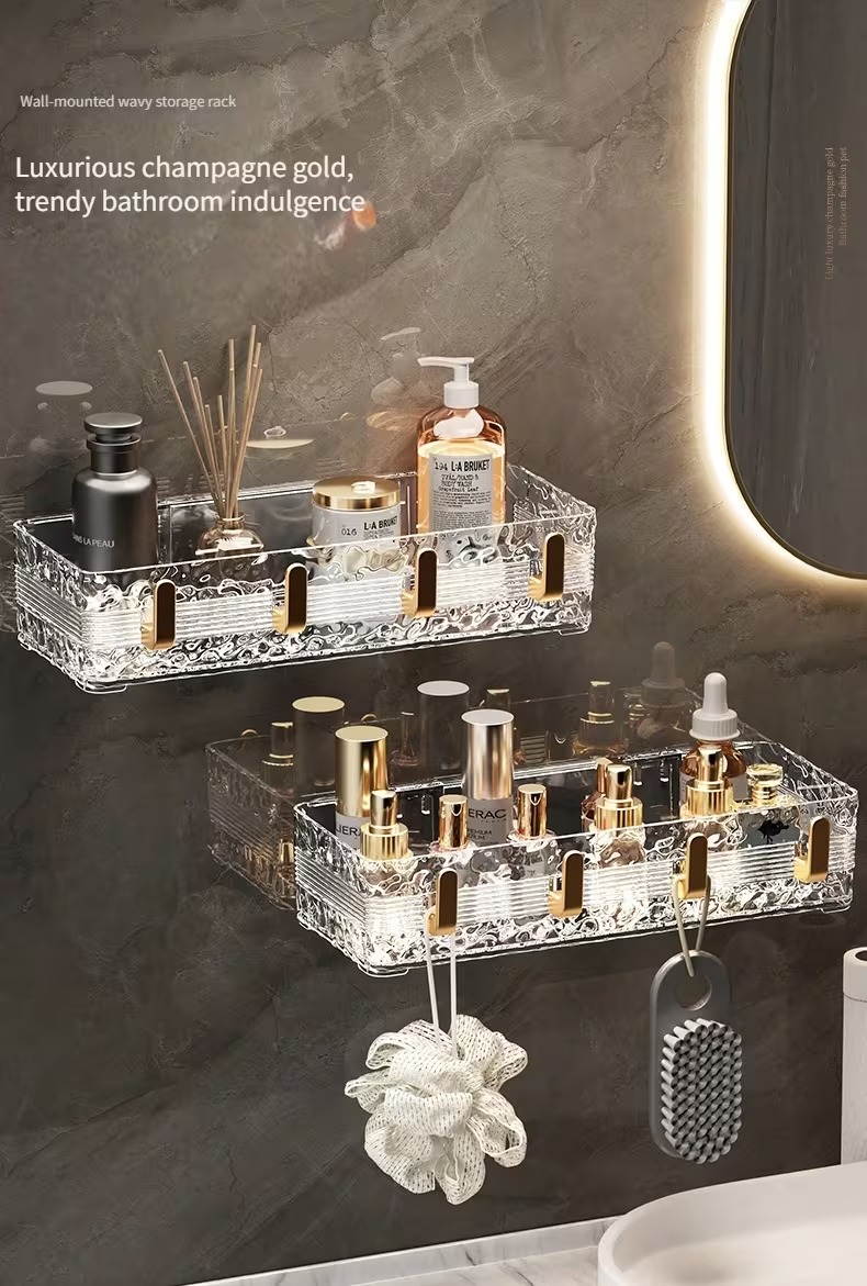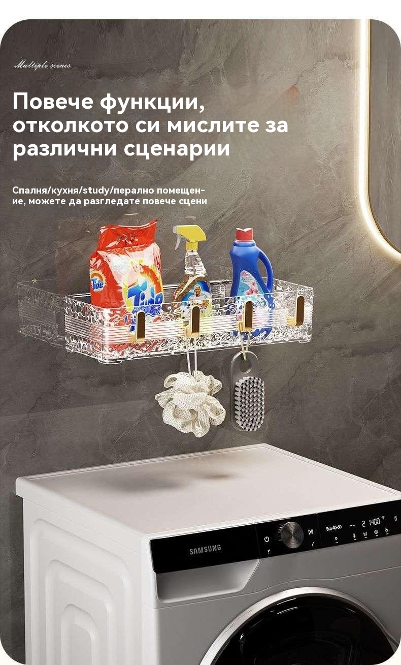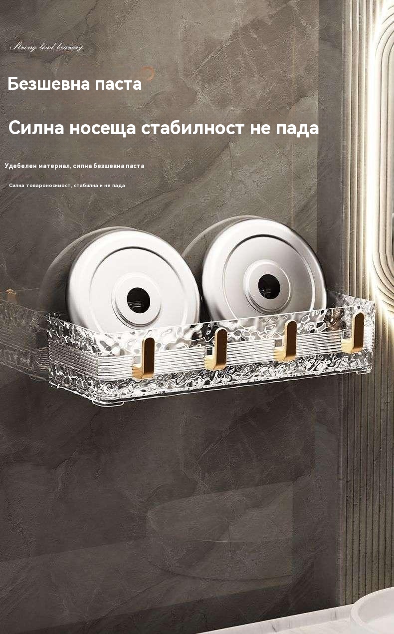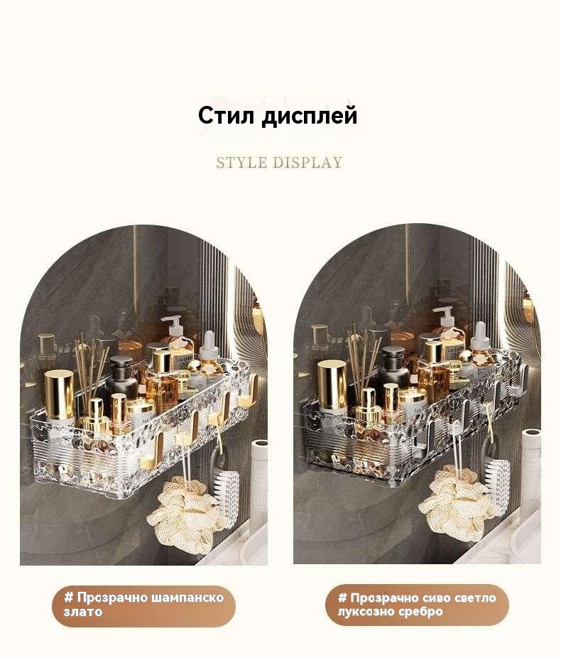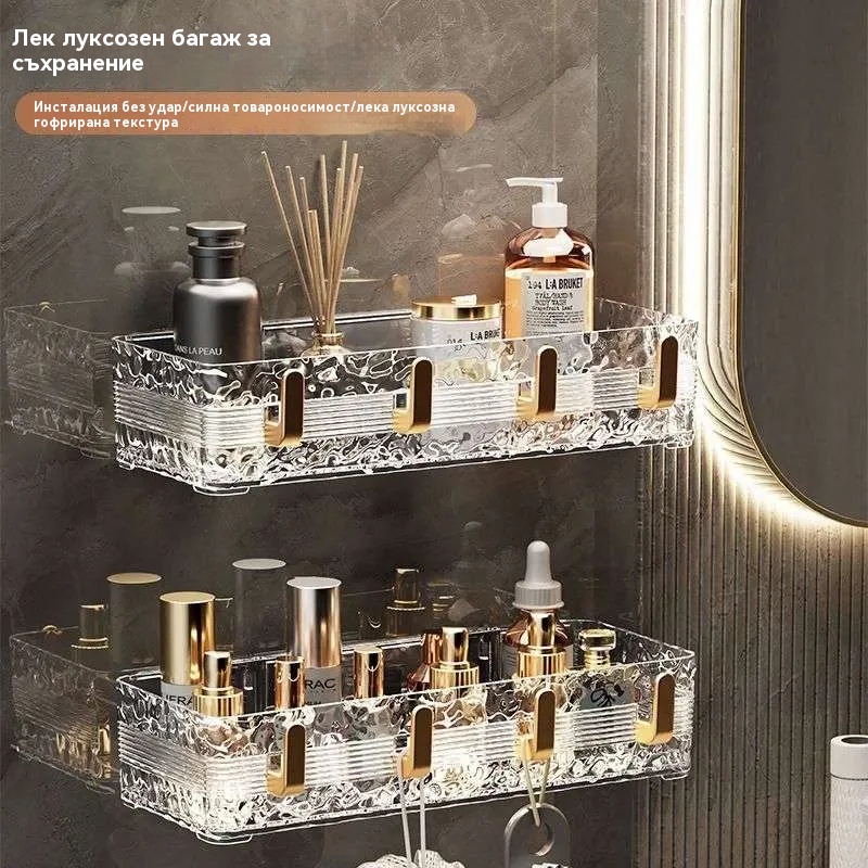 Луксозен стенен рафт за баня - съхранение без пробиване