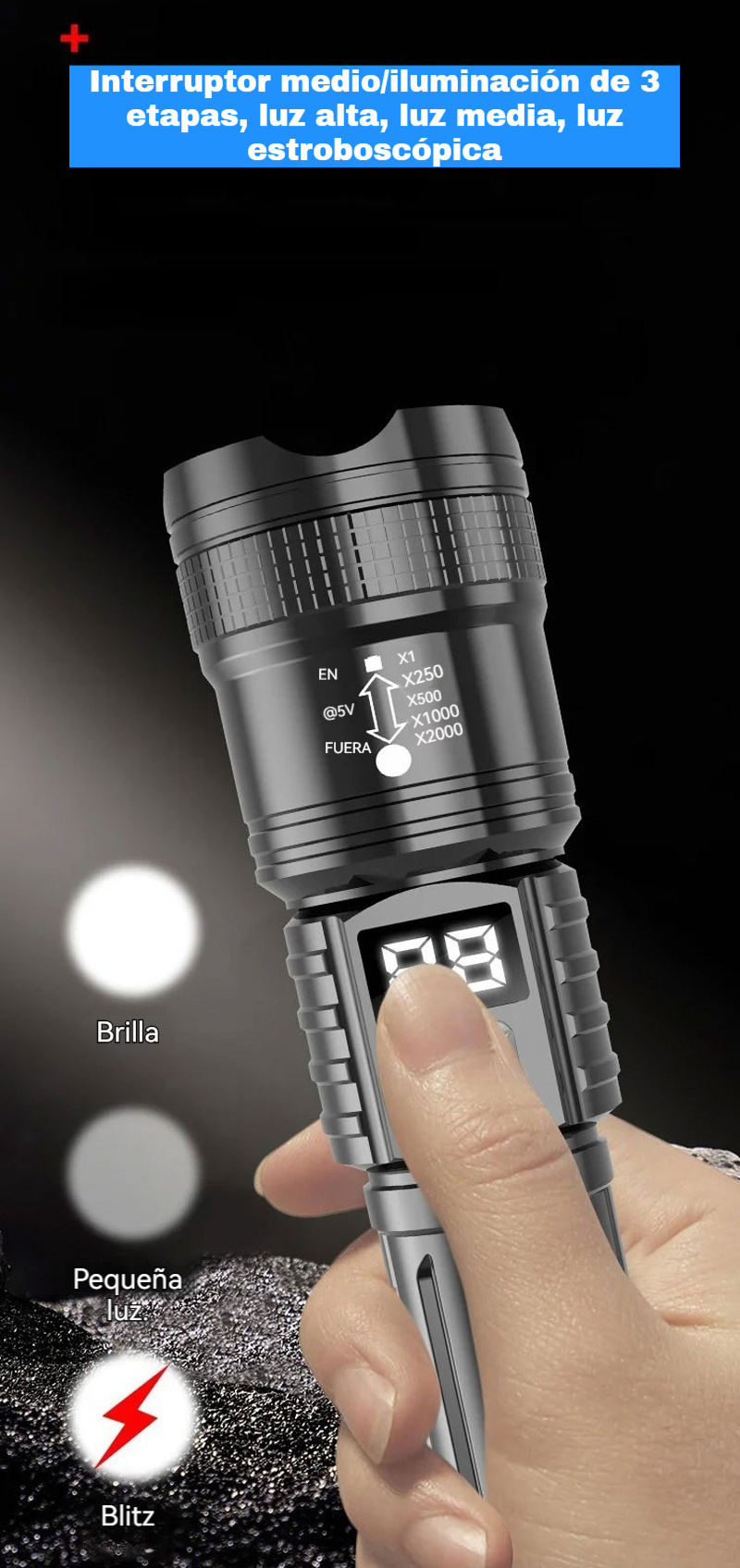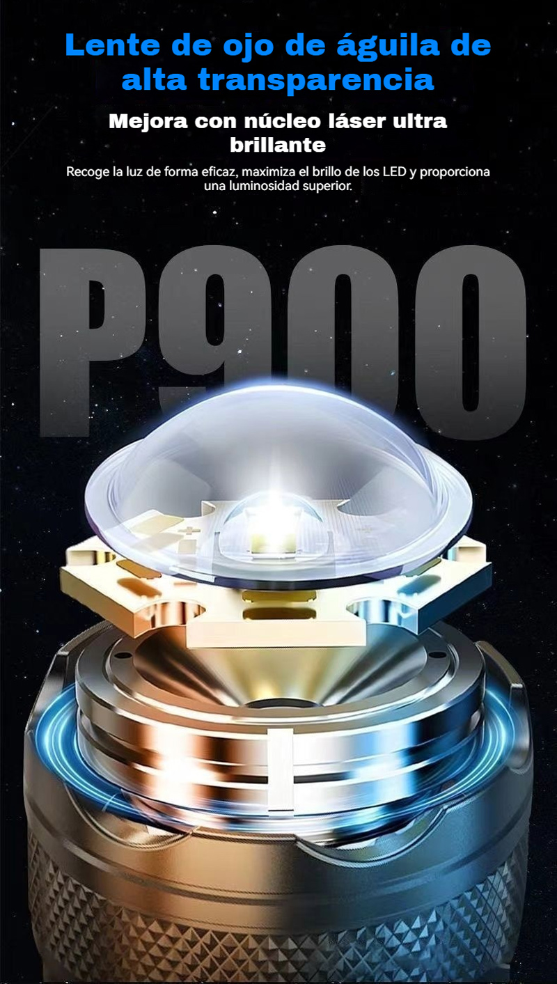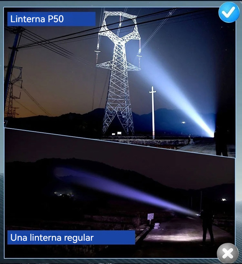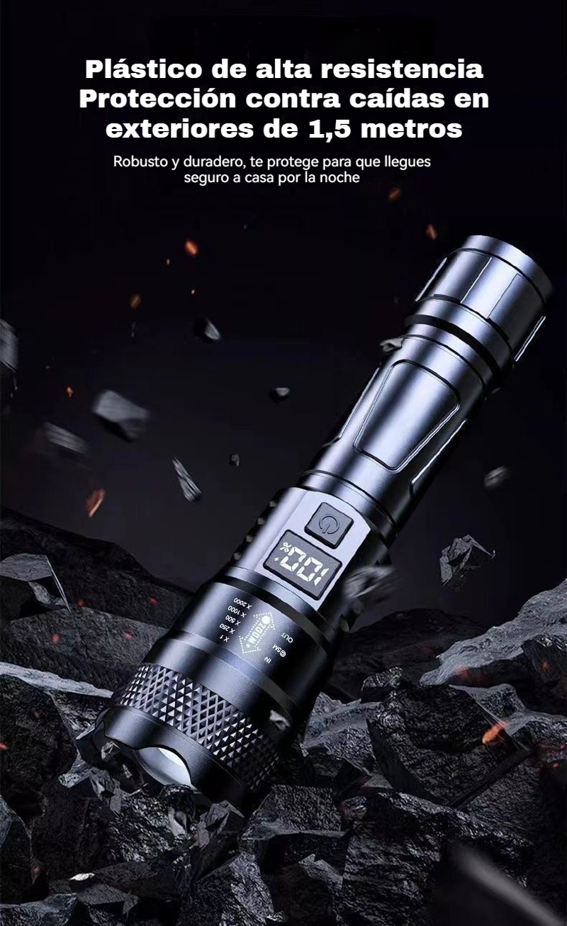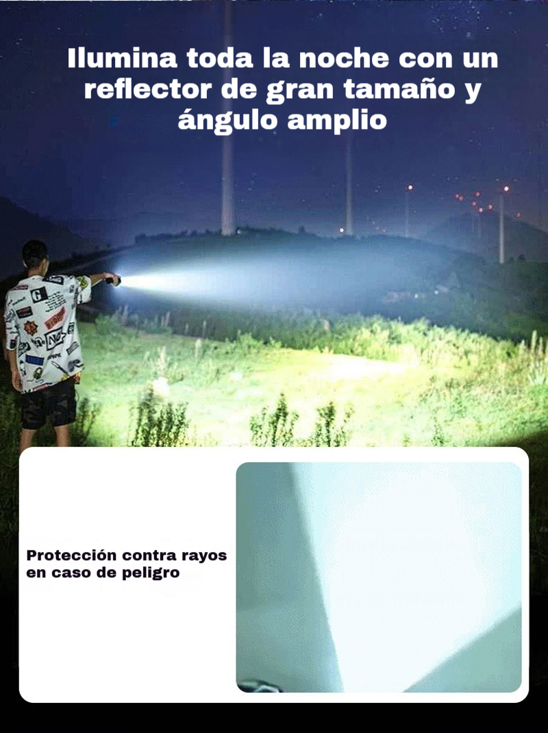 Мощен, презареждащ се преносим фенер за открито, супер ярък, с функции за увеличение и голям обхват.