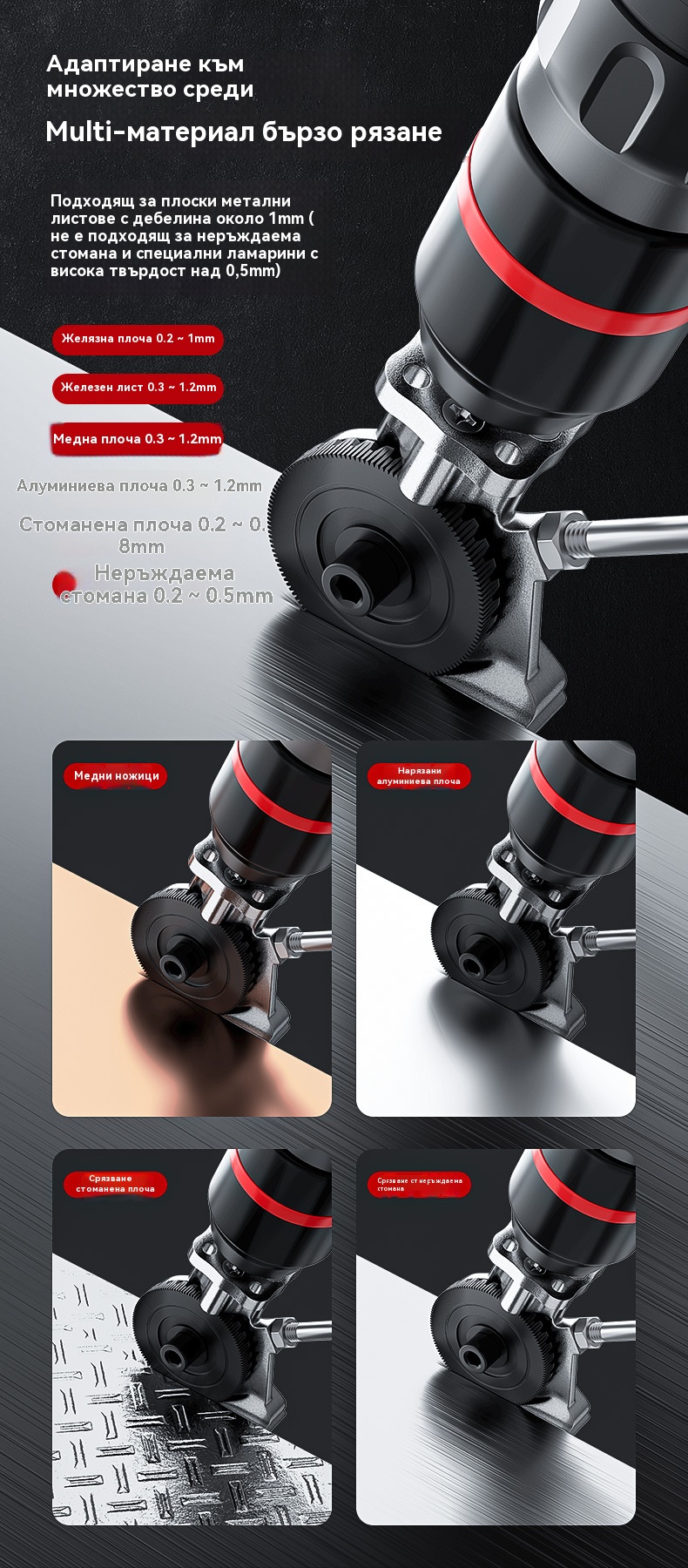 Нови електрически ножици тип бормашина за рязане на метални плочи