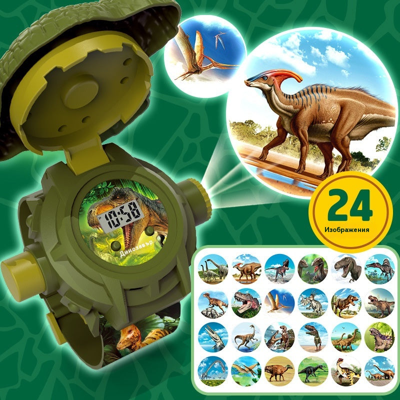 🦖Проекционен часовник с динозаври за деца, 24 динамични проекции + 🕰️Научете се да разпознавате времето