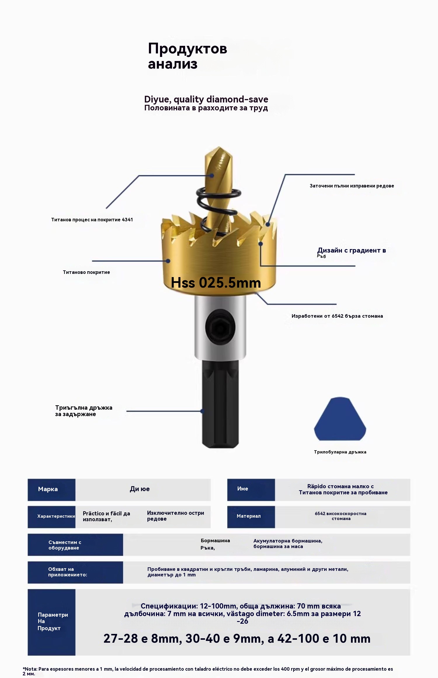 ⚒🧰【16-30 мм】Високоскоростен метален отварач/свредло (5 броя)