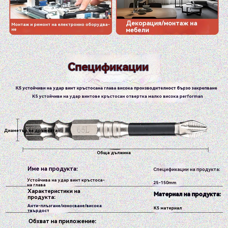 ⚒🧰【25+50+65+70+75+90+100+120+150mm】Противоплъзгащи се кръстати отвертки, електрическа бормашина с висока твърдост, отвертка