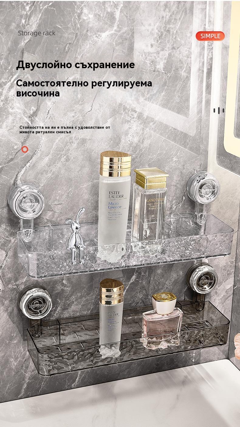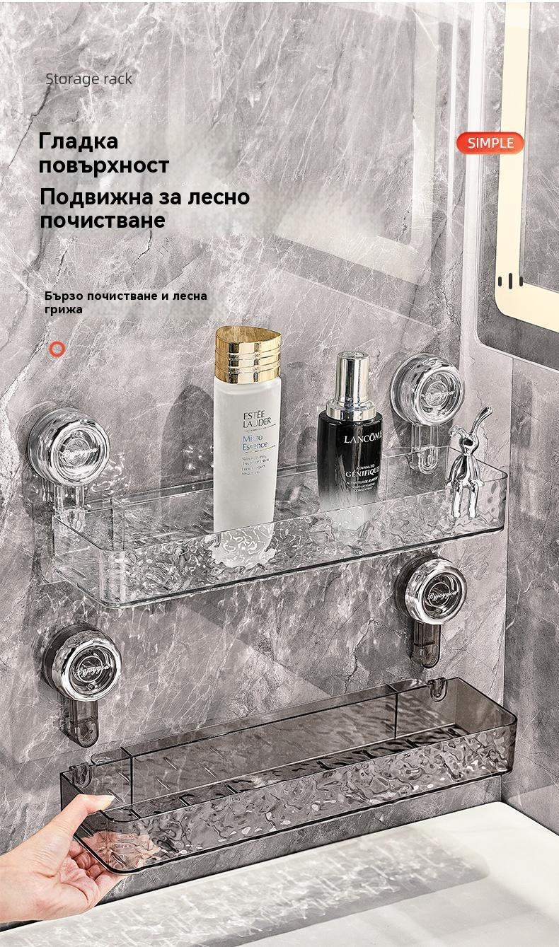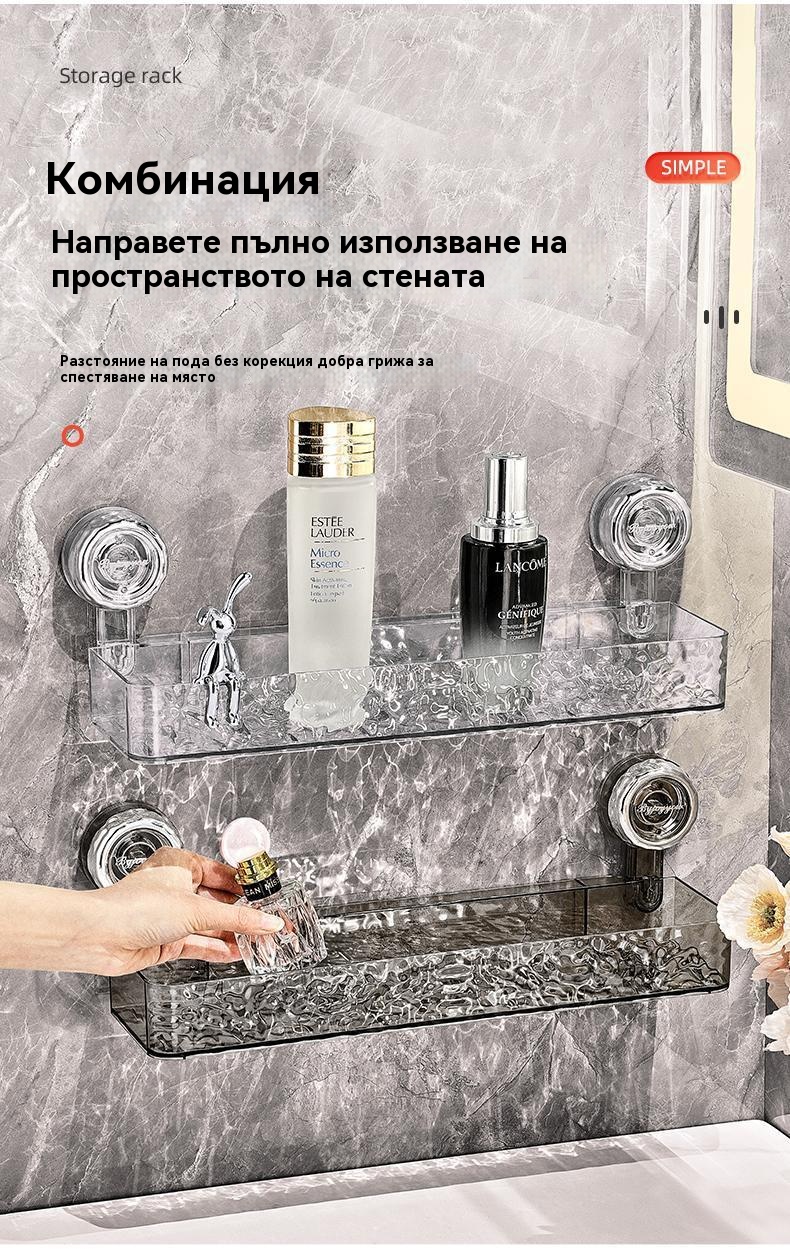 🍽️🧺🔥Купете едно, вземете едно безплатно🔥 Стойка за съхранение с вендузи без перфоратори, стилна вълнообразна стойка за сифон, подходяща за кухня и баня