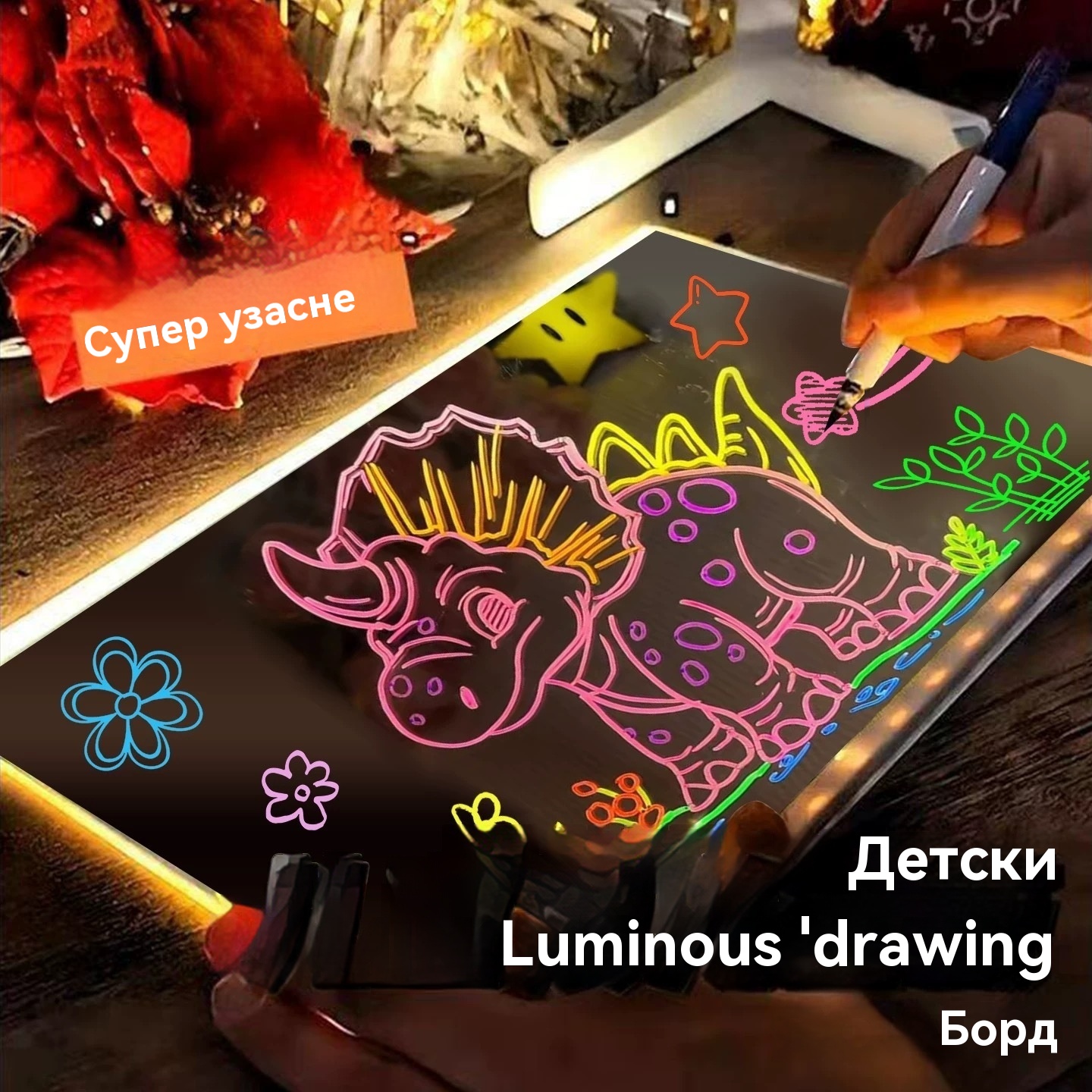 🎨💡🔥Детска светеща дъска за рисуване, ръчно изработена, изтриваема, образователна флуоресцентна дъска за рисуване „Направи си сам“ с графити