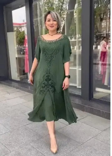 👗2025 Нова дамска рокля с широка дантела, голям размер