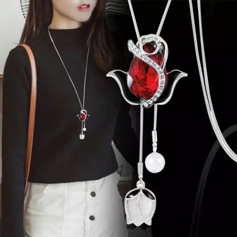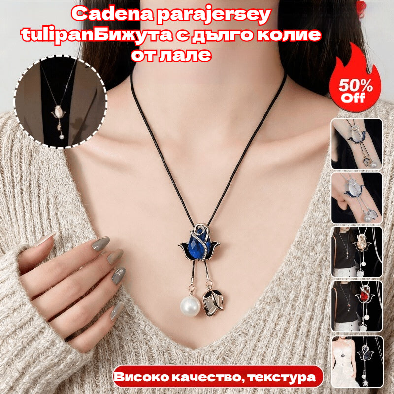 💝✨Дълго колие с котешко око и лале, верижка за пуловер, аксесоари за облекло