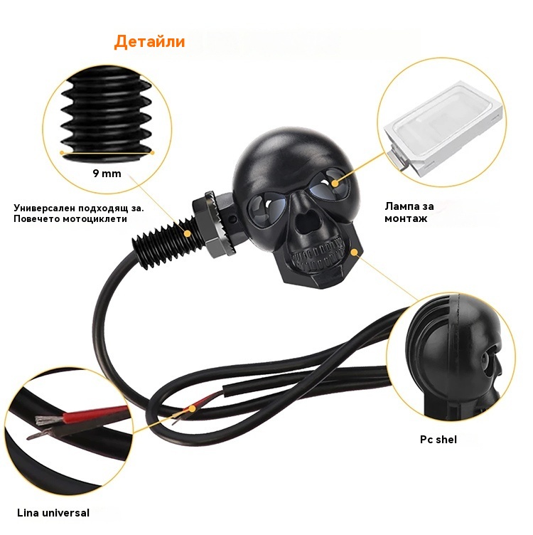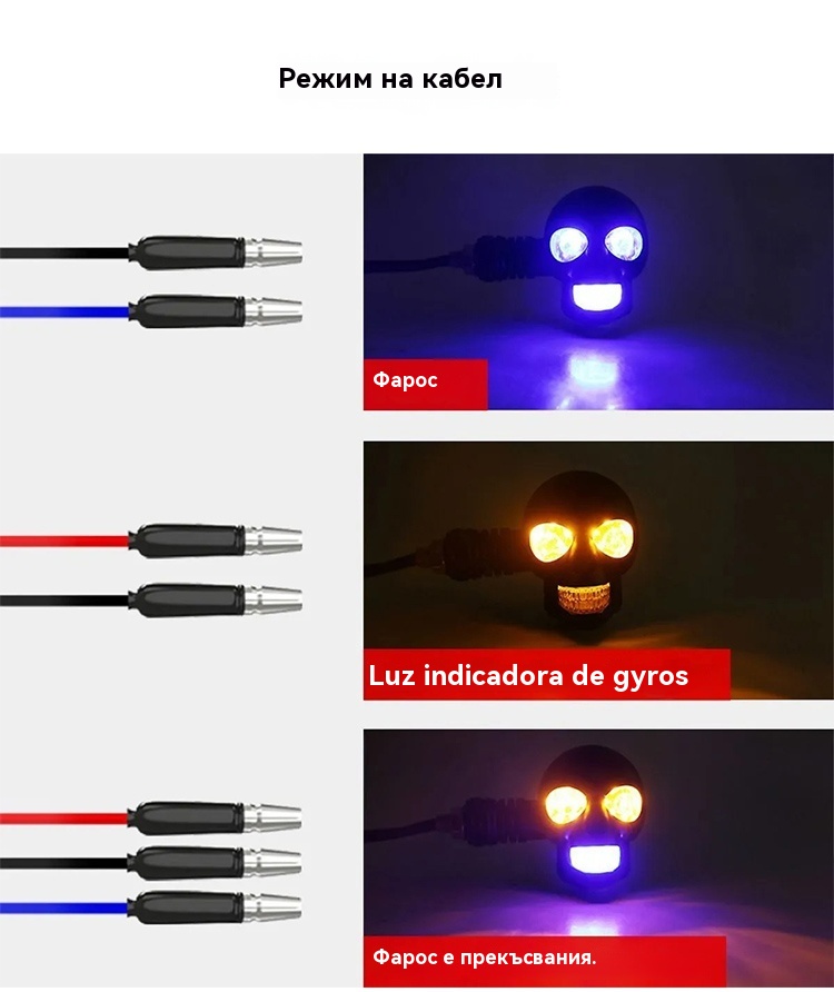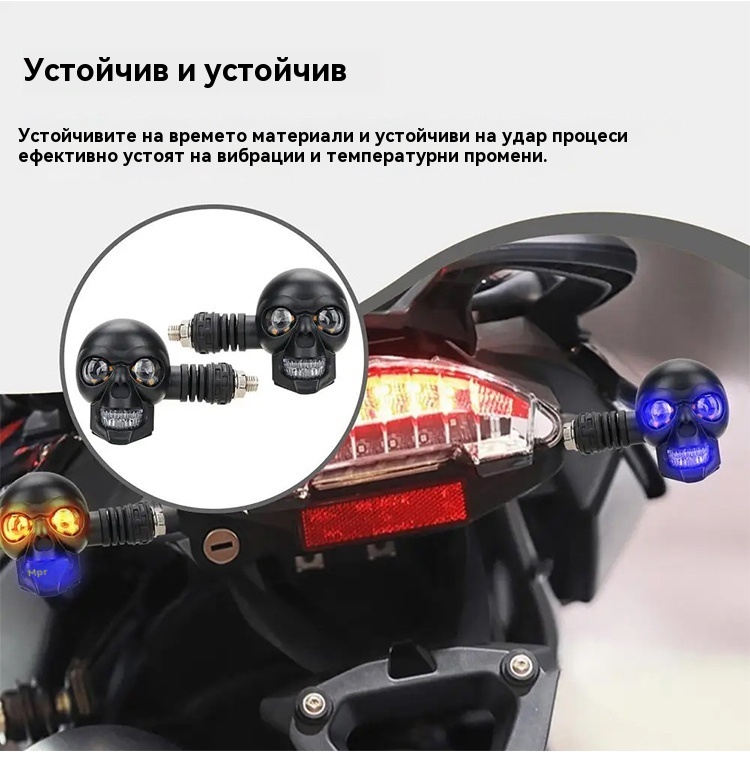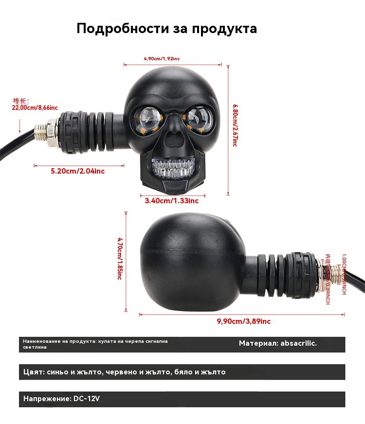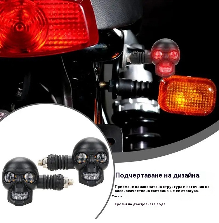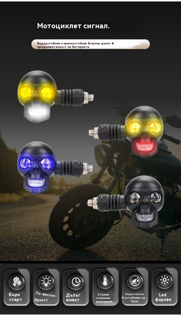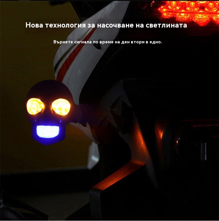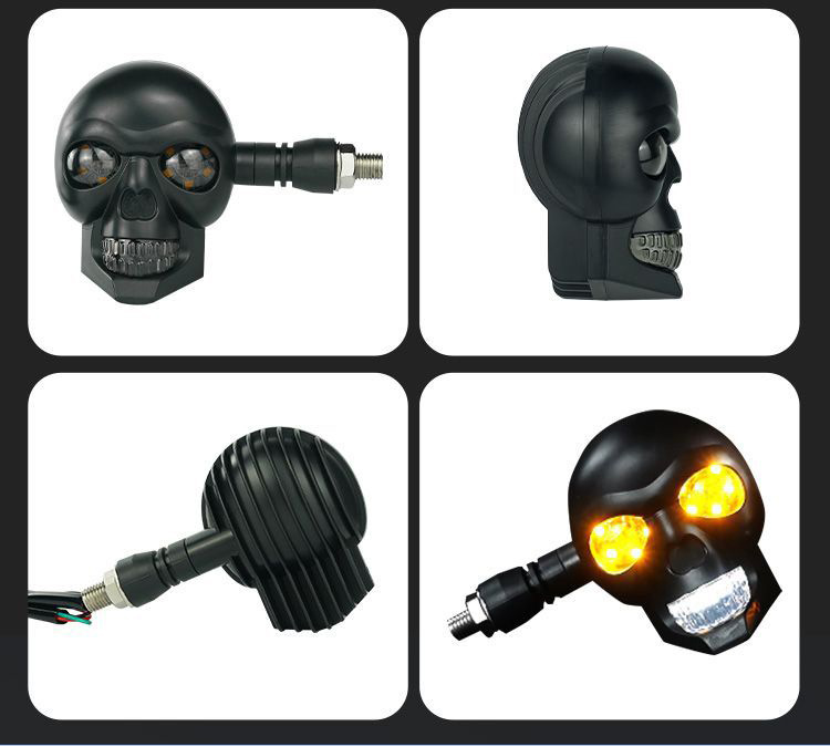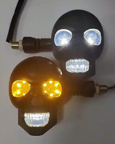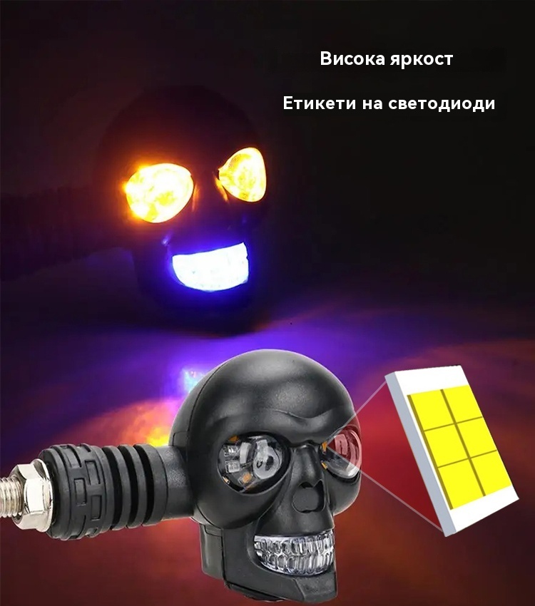 💥🏍️12V мотоциклетен мигач с дизайн на череп, двуцветен LED модифициран фар, спомагателна светлина за мотоциклет