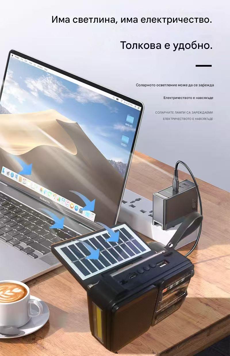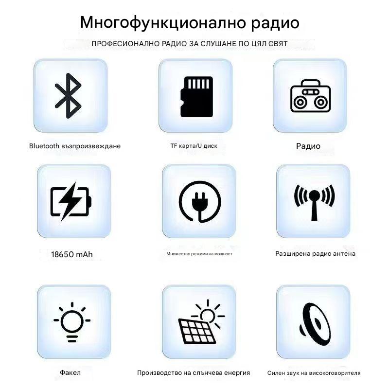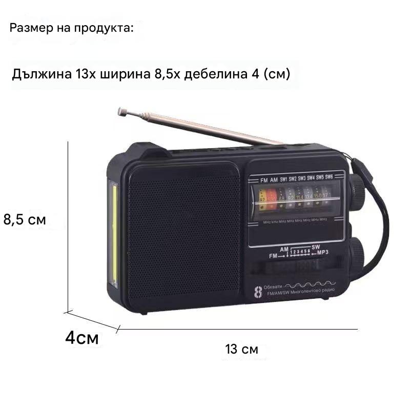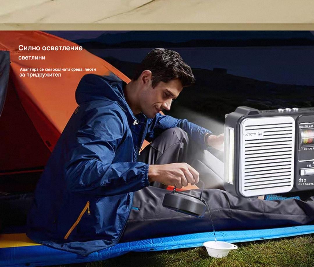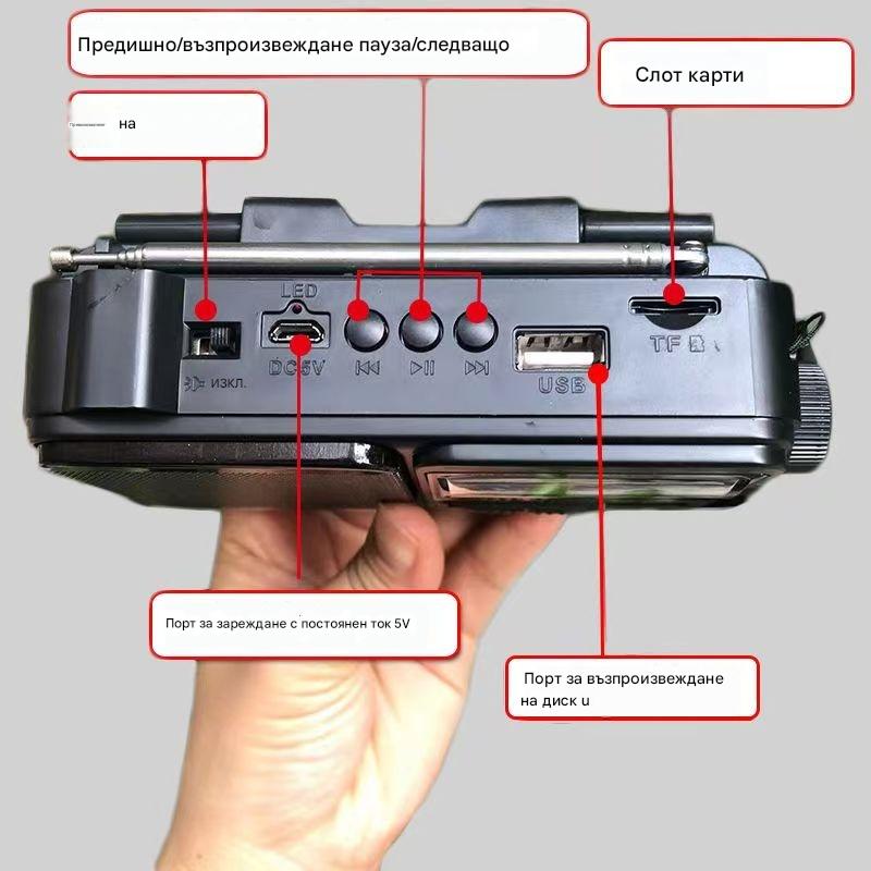 💥🏕️Многофункционално преносимо радио с аварийно фенерче, AM радио, Bluetooth твърд диск и многозоново аудио.