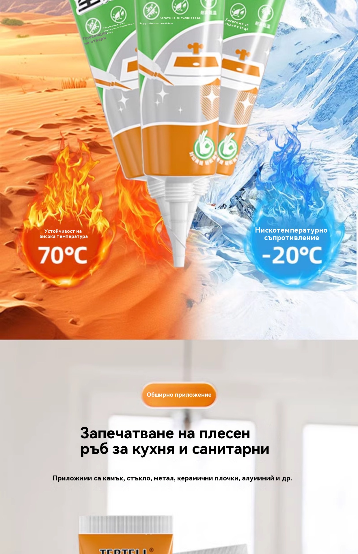 💥🚽💧Многофункционален водоустойчив бял уплътнител, устойчив на мухъл и водоустойчив, подходящ за тоалетни, прозорци, мивки и подове.