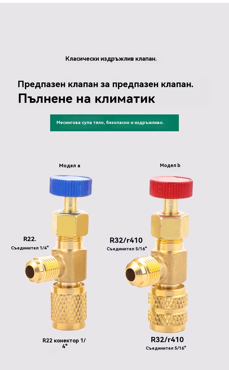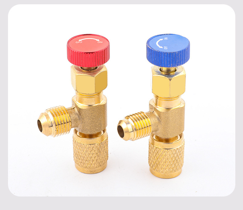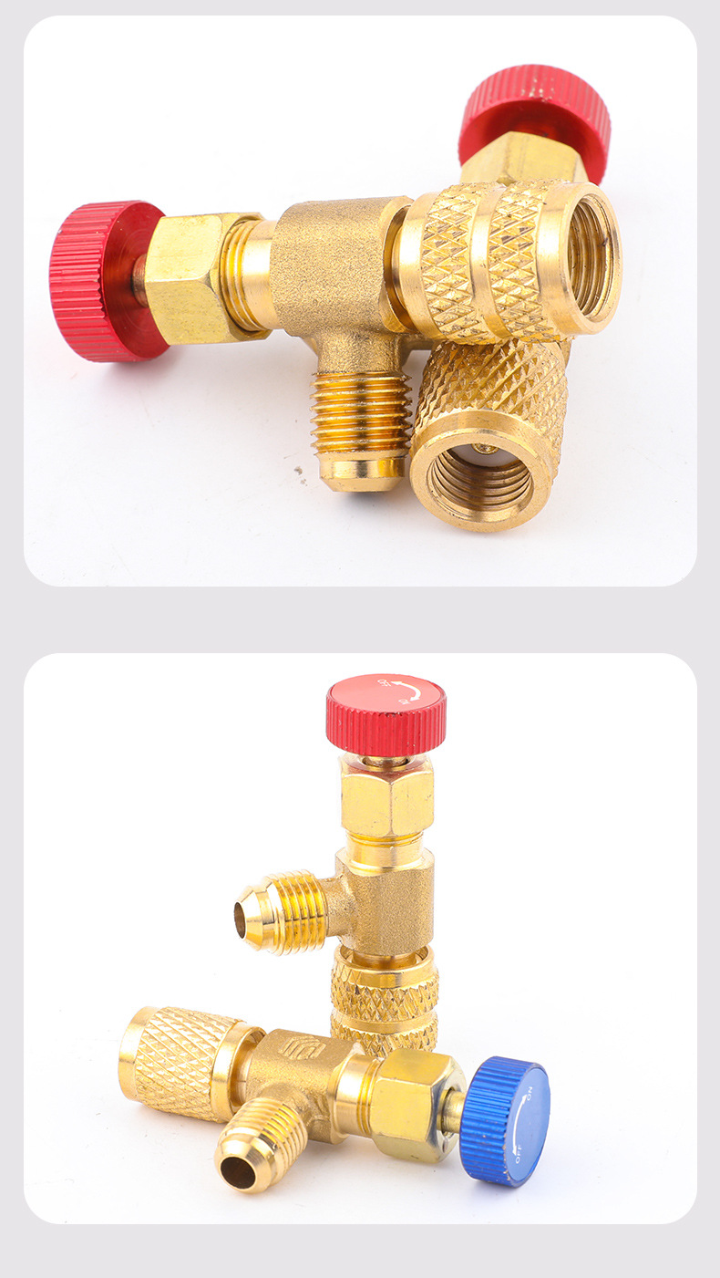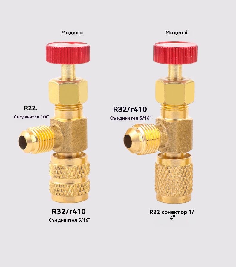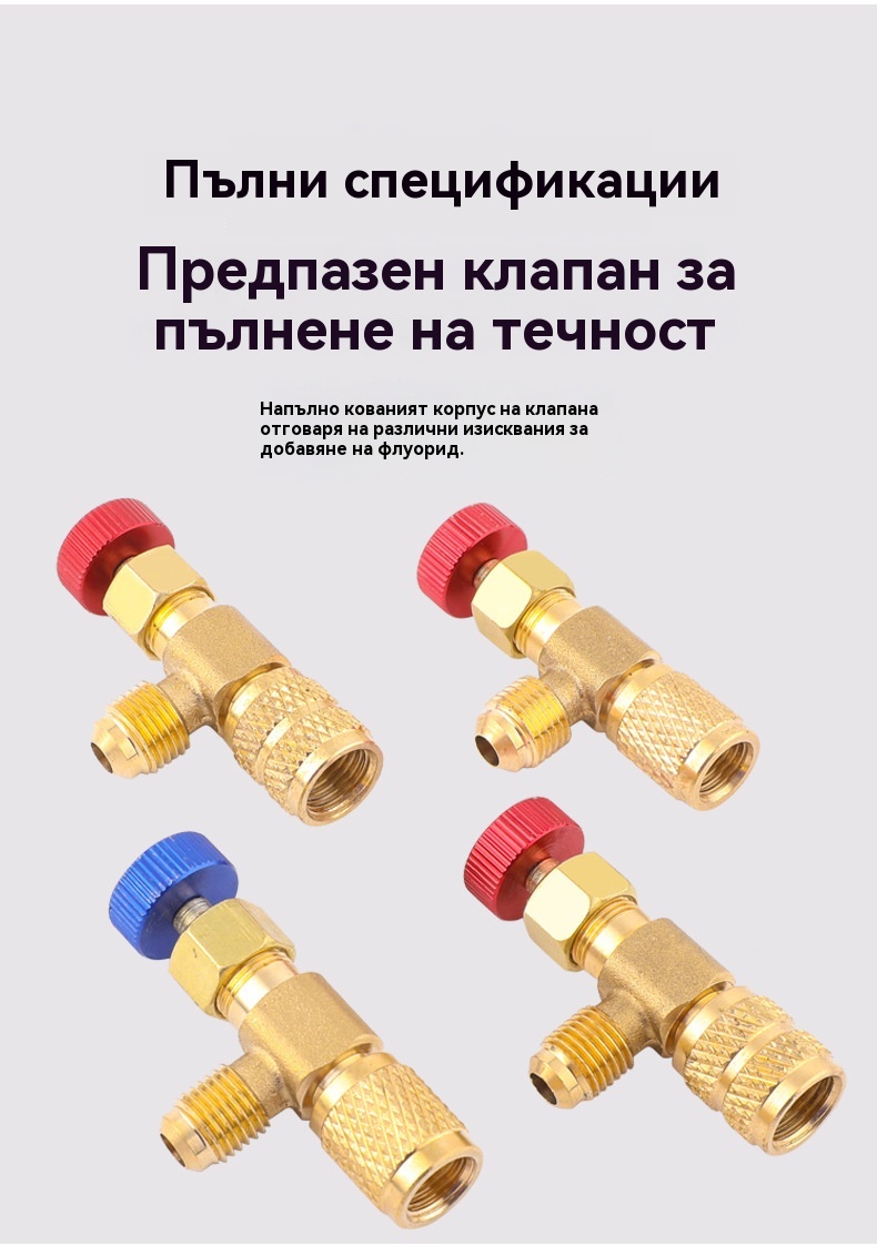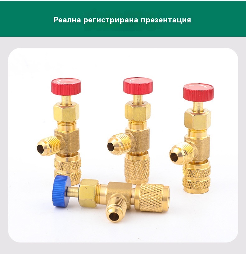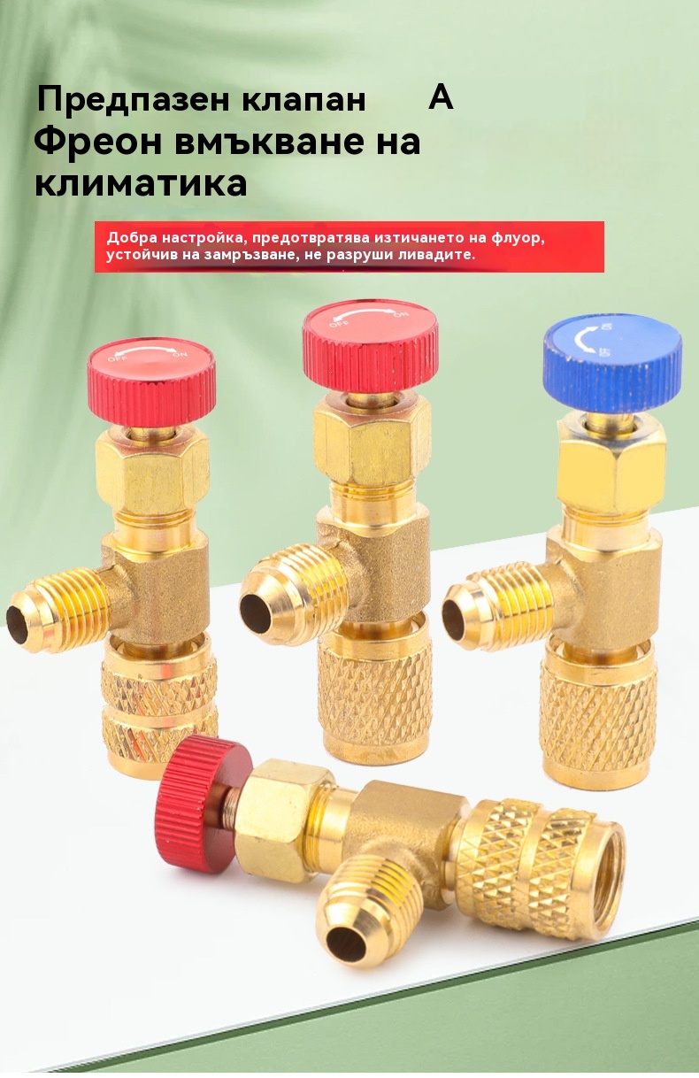 💯🛒Комплект от 4 предпазни клапана за хладилен агент, адаптерни конектори R22/R410A, месингови фитинги без захранване, с контрол на включване/изключване, за зареждане и обслужване на ОВК системи.