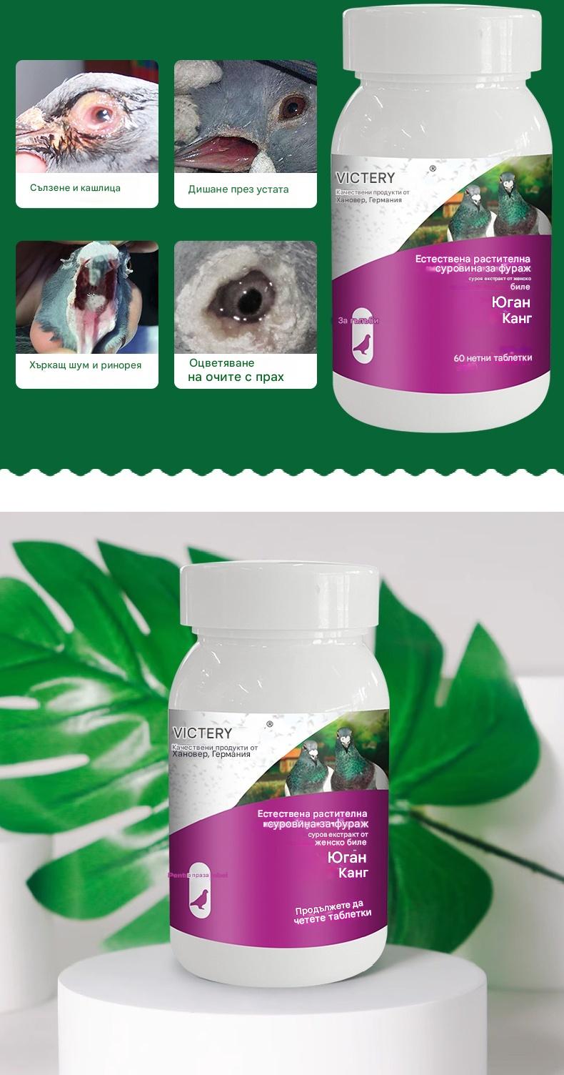 🕊️100 таблетки, специално лекарство за състезателни гълъби, кашлица и хрипове при състезателни гълъби, сълзене в едното око, замъглено зрение и трахома, черно-червено течение от носа