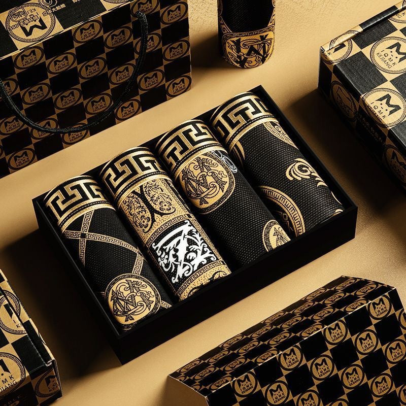 🚹✅💥【40-140кг】Дишащо бельо от ледена коприна за мъже, удобно безшевно бельо, големи размери, модерен принт