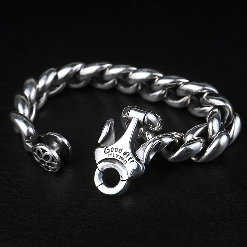 【Изработена от чисто сребро】🔥Винтидж мъжка гривна с мотив на късмет, градски пънк стил, ръчно изработена за уникален вид