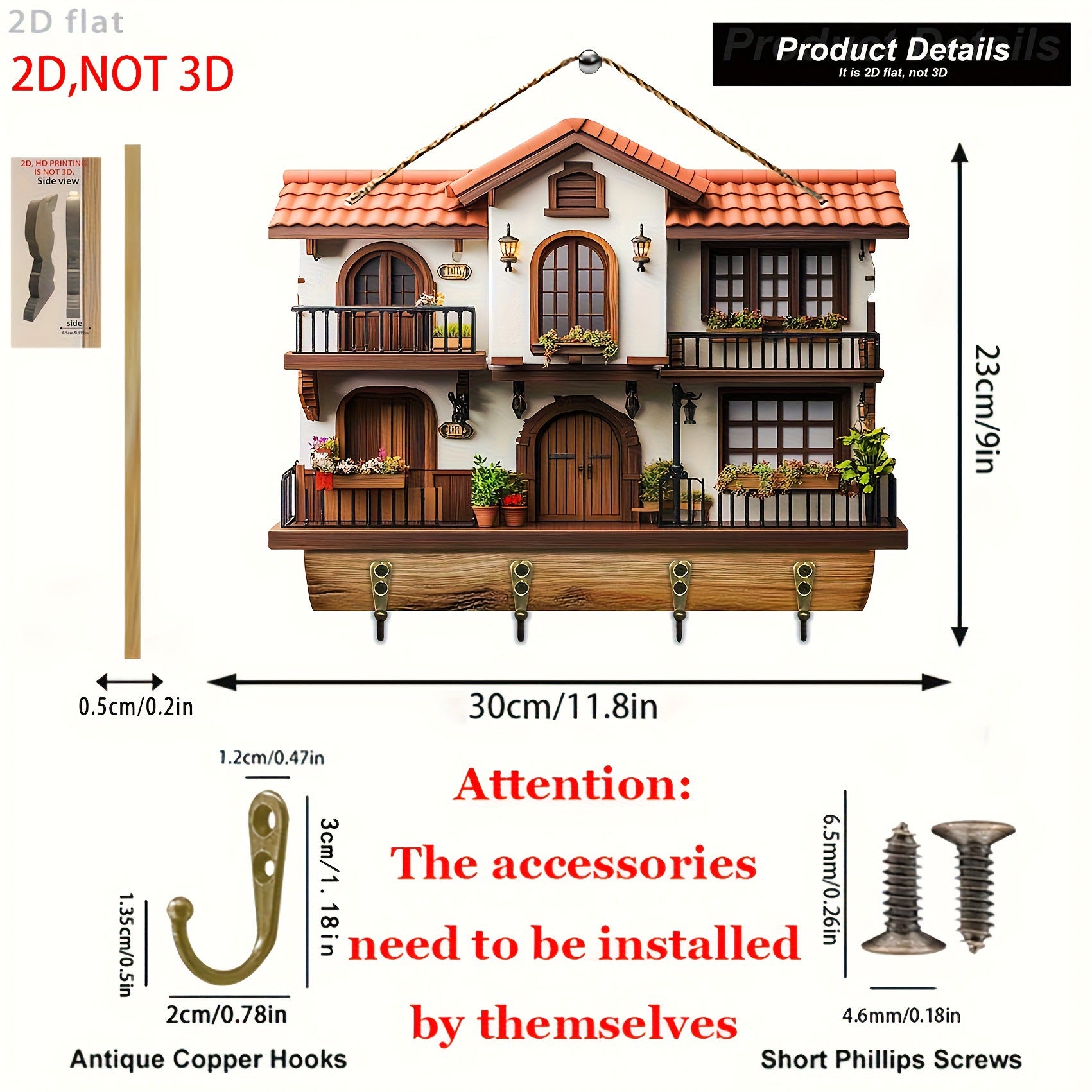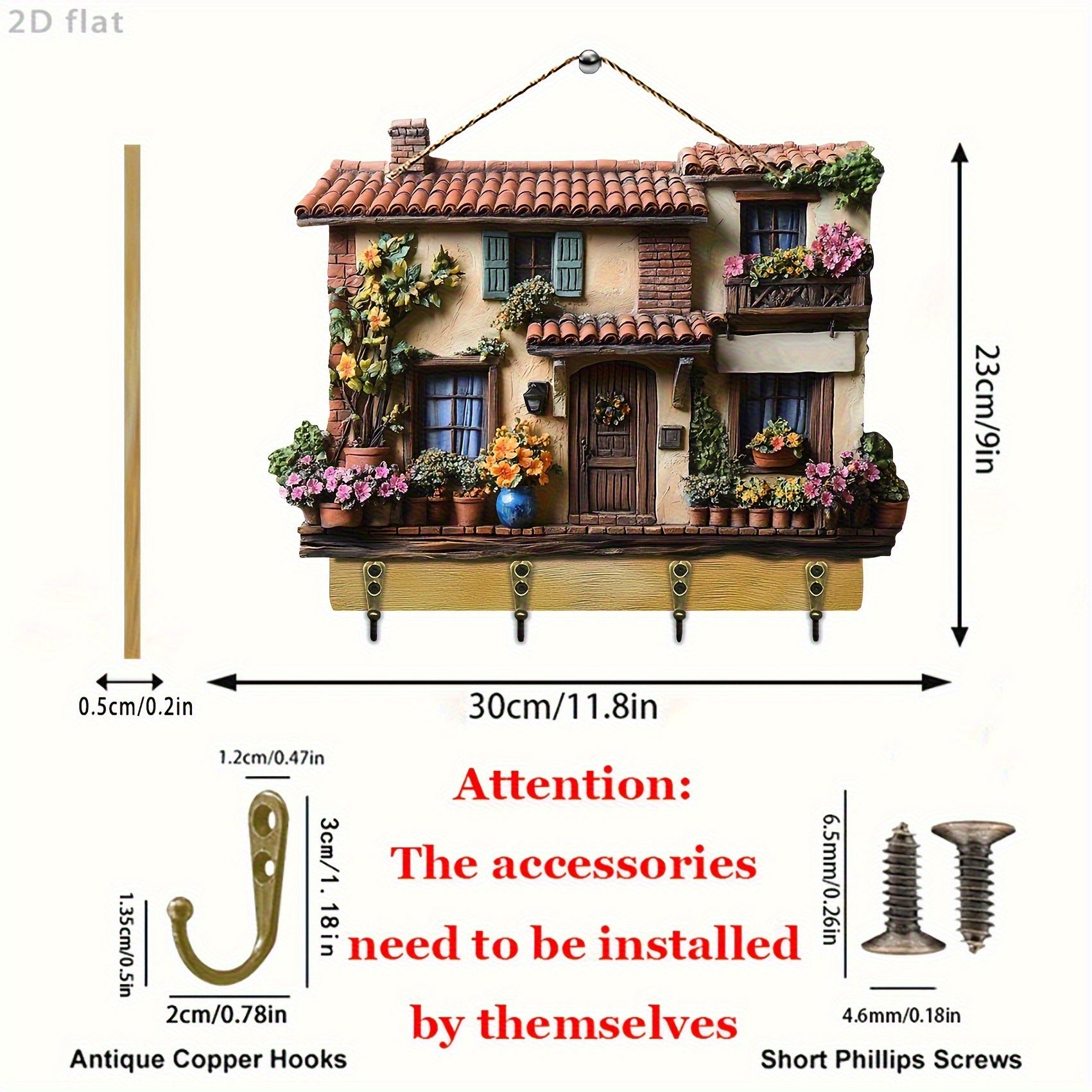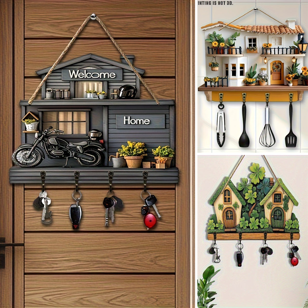 【Купете 1, вземете 1 безплатно】Висулка за ключодържател за веранда, дървена декорация, красива дървена кука за домашен декор