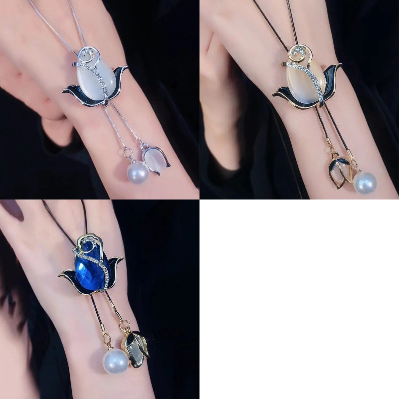 【Три цвята за избор】Дълго колие с котешко око и лале