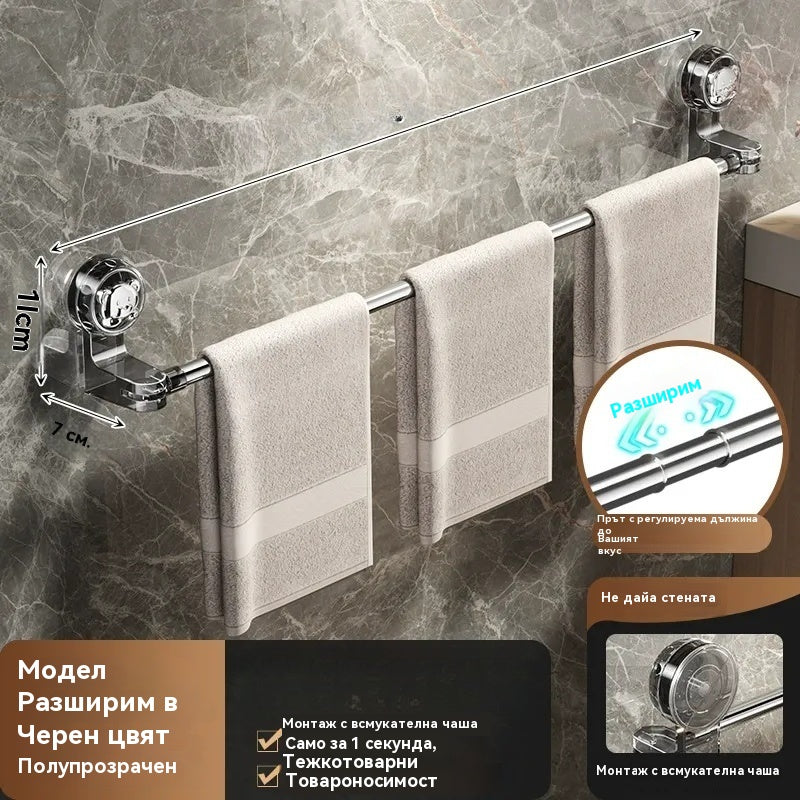 ✨🚿Лек дизайн без пробиване — Прибираща се поставка за кърпи с вендуза