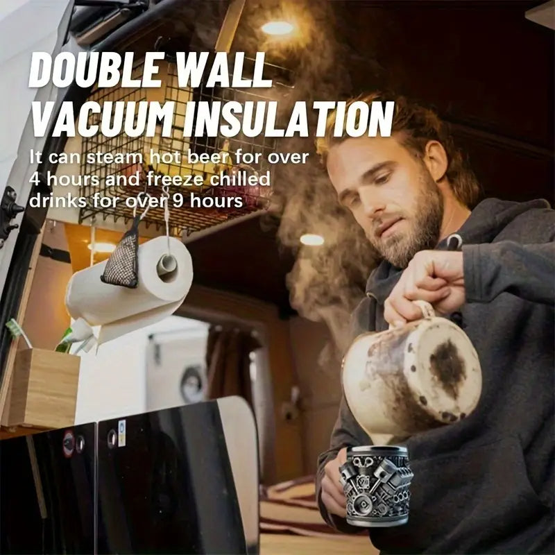 🎁☕ Чаша за кафе от неръждаема стомана Creative Engine V6V8, механичен дизайн