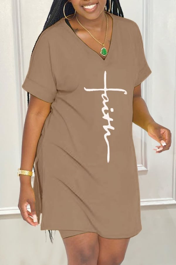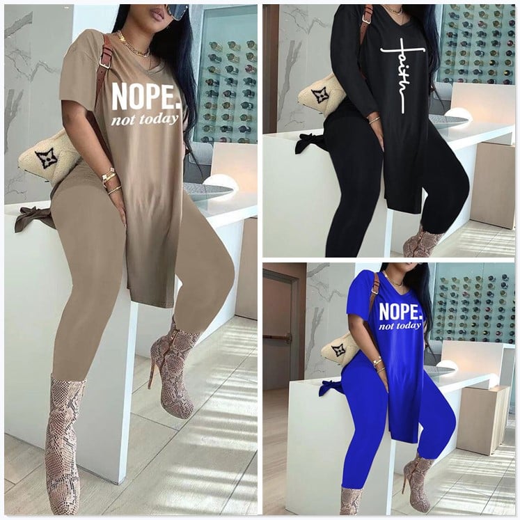 šćTop + spodnieć Zestaw T-shirt i szorty z dekoltem w szpic i nadrukiem w litery