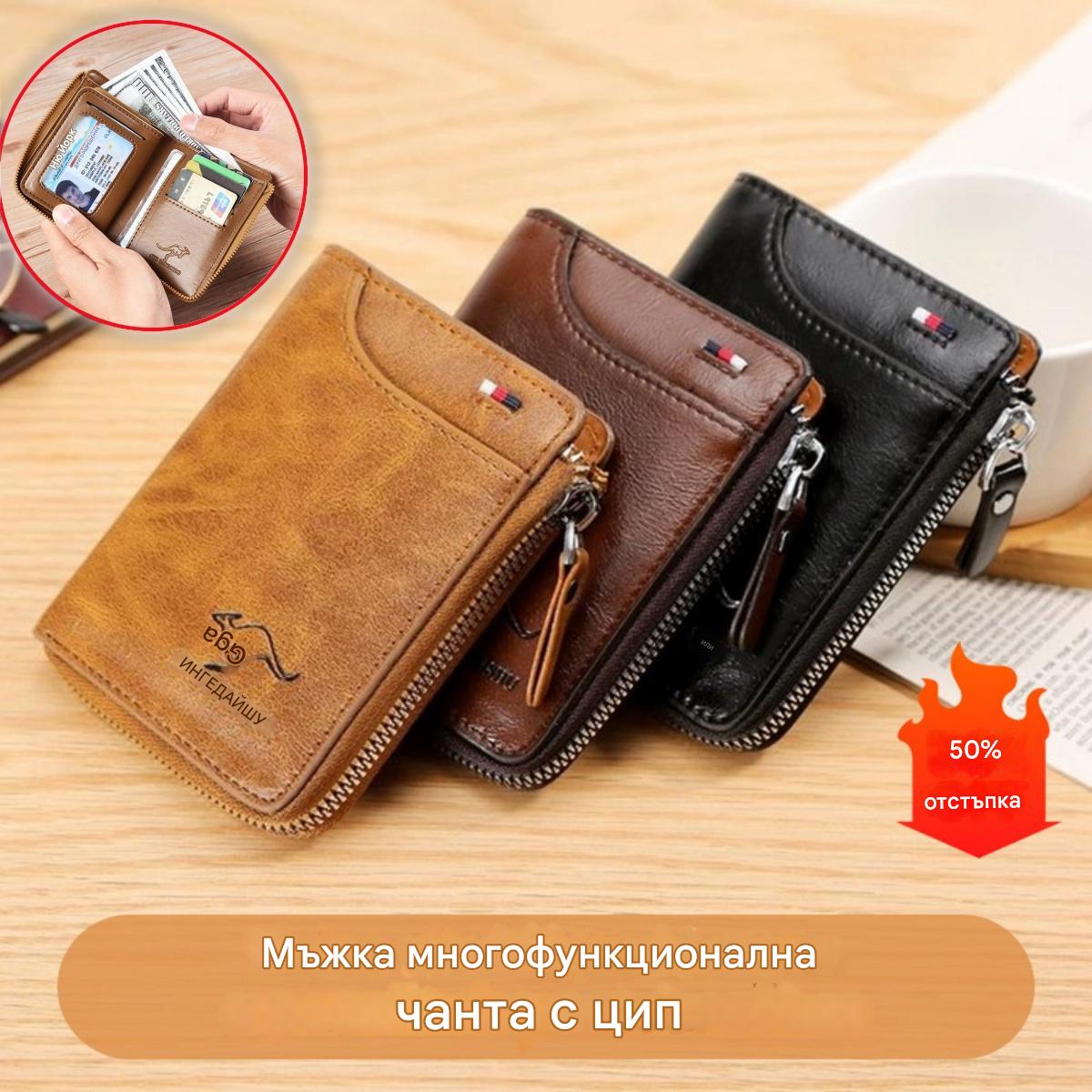 🔥Купете 1, вземете 1 безплатно🔥Мъжки портфейл с голям капацитет и антимагнитен ефект 2025, изработен от мека кожа