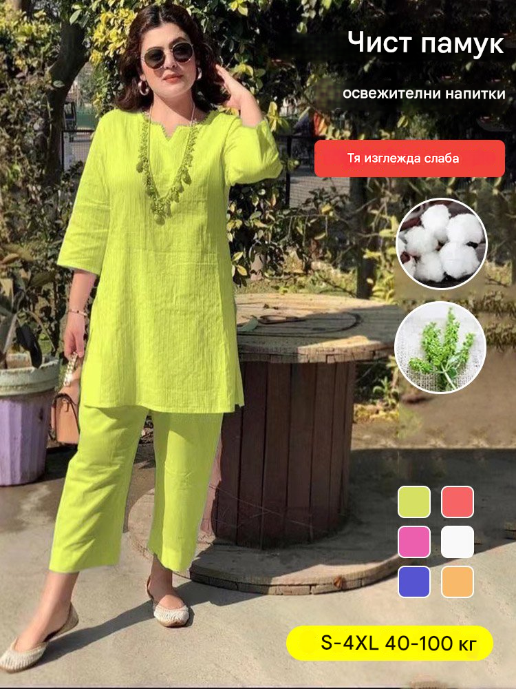 【🔥Купете 1, вземете 1 безплатно】🔥【40-100 кг】Летен нов модерен едноцветен костюм с дълъг ръкав, етнически стил и темперамент за пътуване до работа