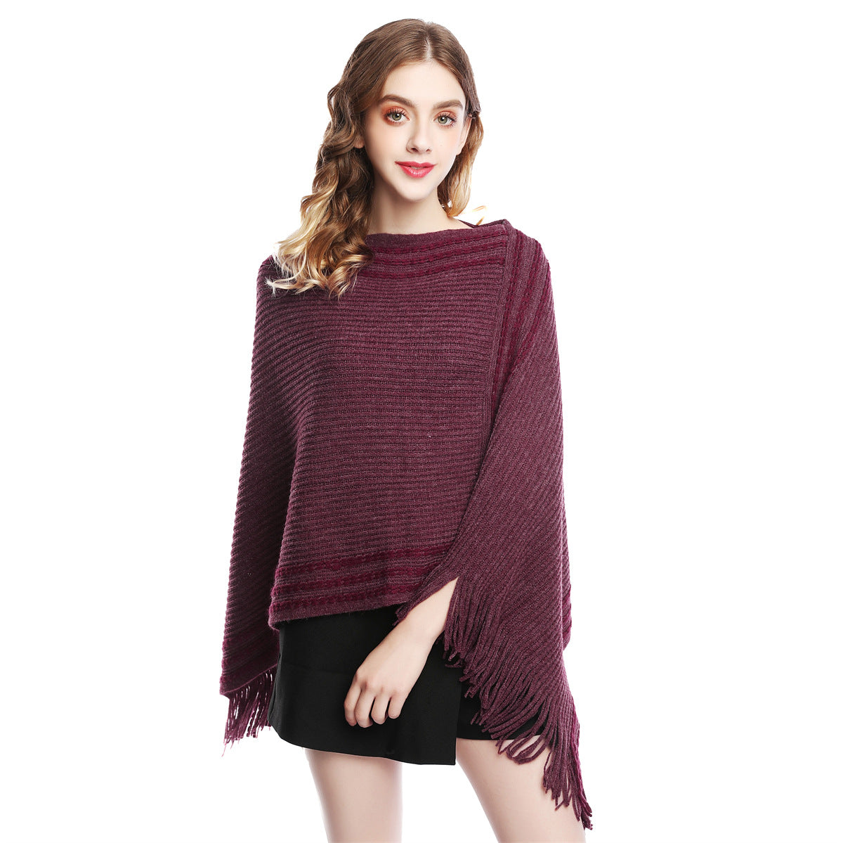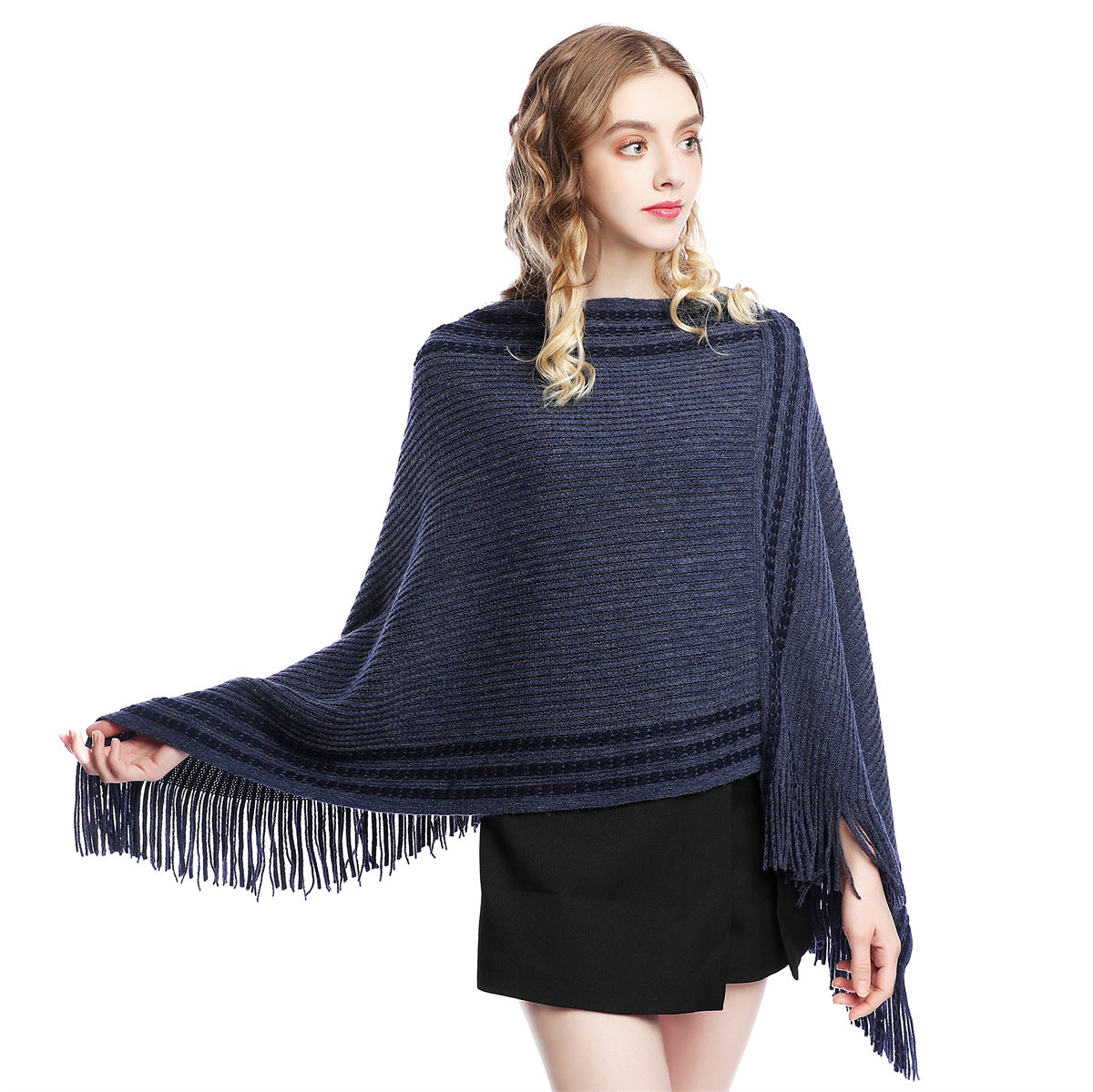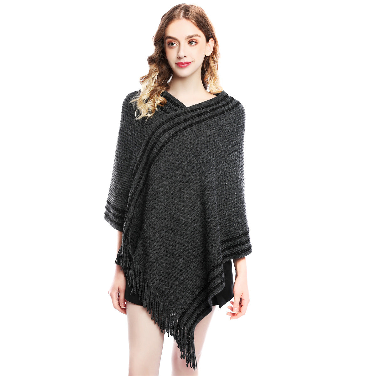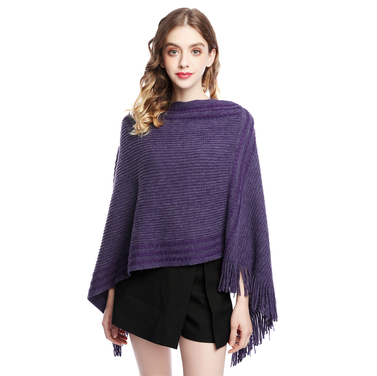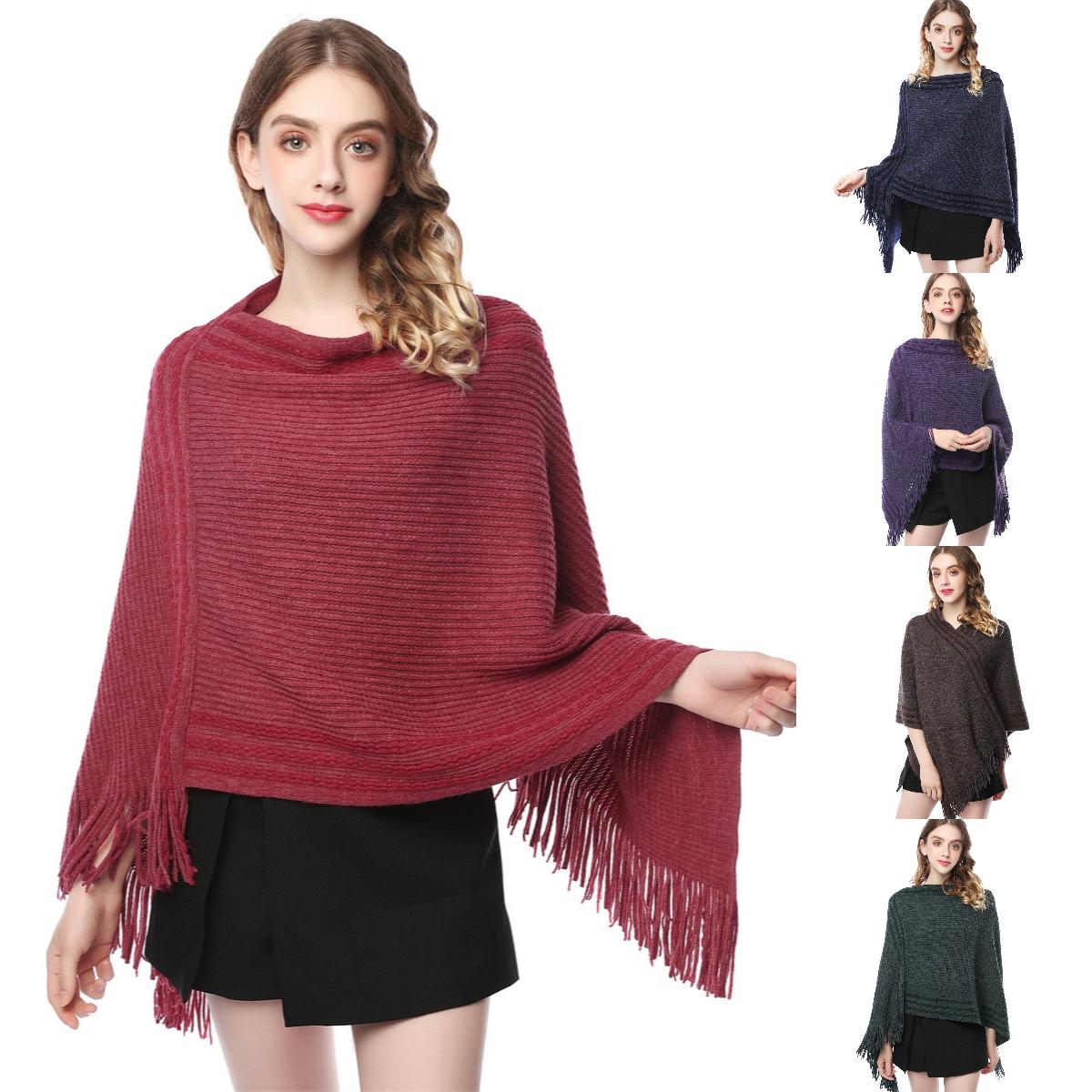 🔥【60-80 см】Плетена вълнена пелерина с големи размери за есен и зима с пискюли за топлина