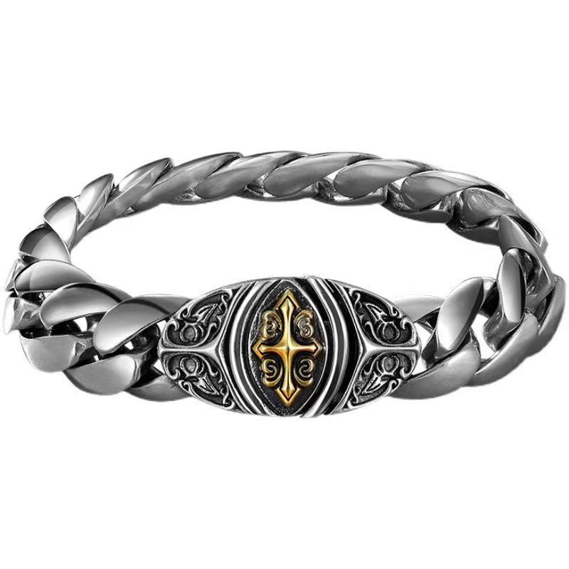 😍✨【Изработена от стерлингово сребро】🔥Винтидж мъжка гривна с мотив за късмет, градски пънк стил, ръчно изработена, уникален външен вид