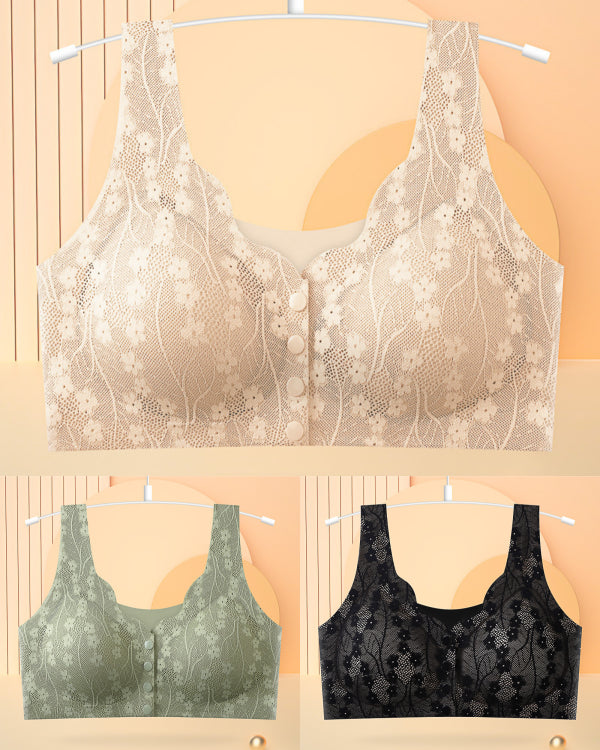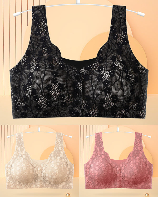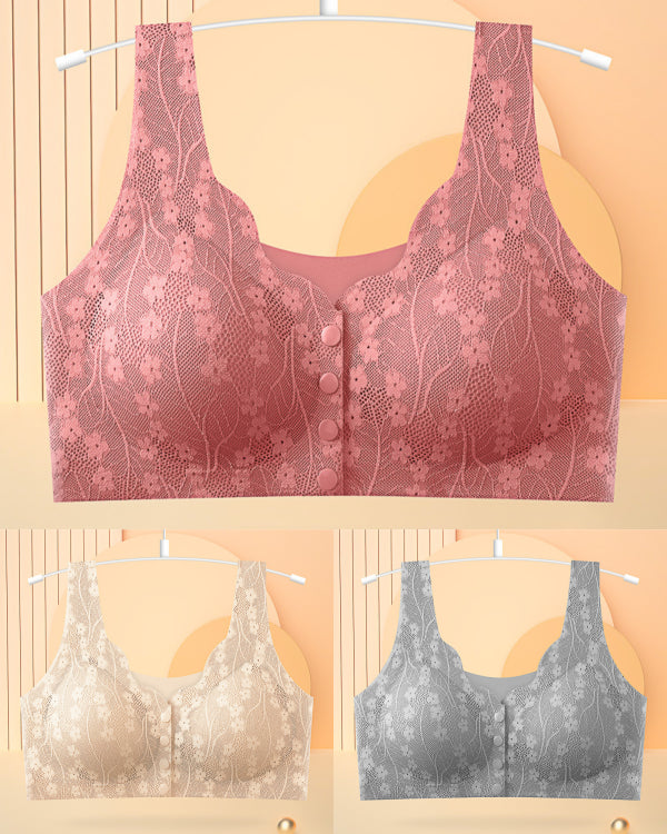 😍【3/6 sztuk】【40-100KG】Damski, bezprzewodowy, koronkowy biustonosz zapinany z przodu