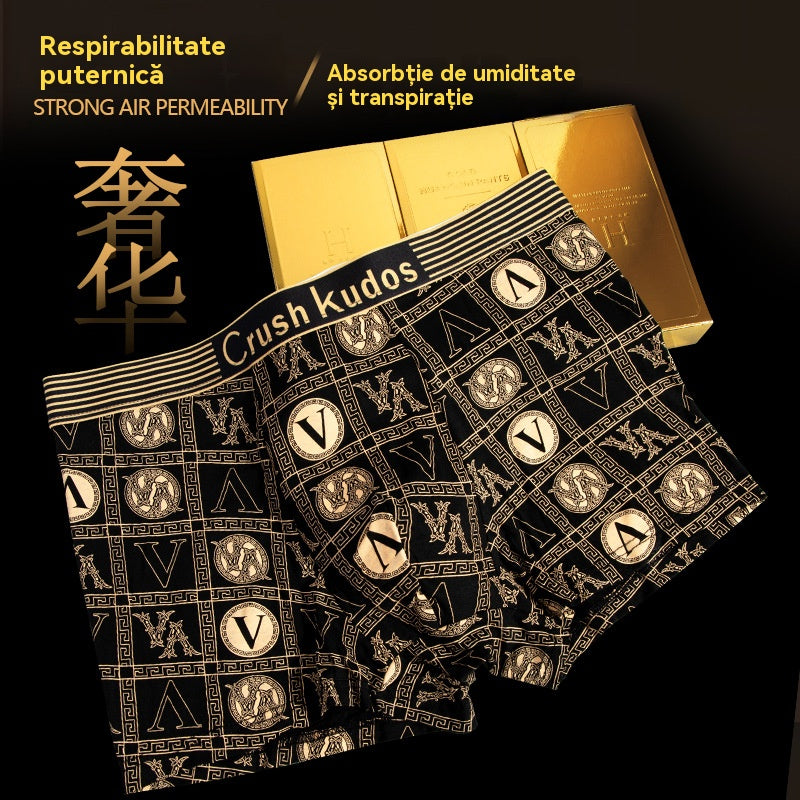 🚹✅💥【40-140kg】Дишащо бельо от ледена коприна за мъже, удобно безшевно бельо, големи размери, модерен принт