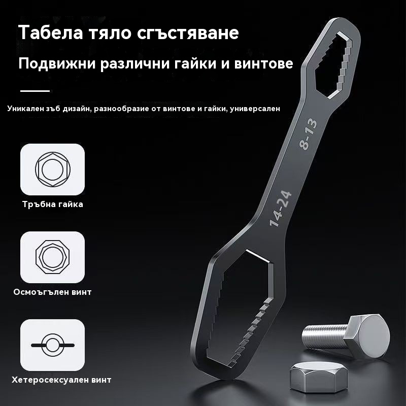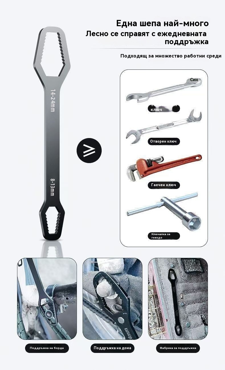 【2 артикула】Универсален двустранен ключ 8-24 мм, изработен от немска свръхтвърда стомана.